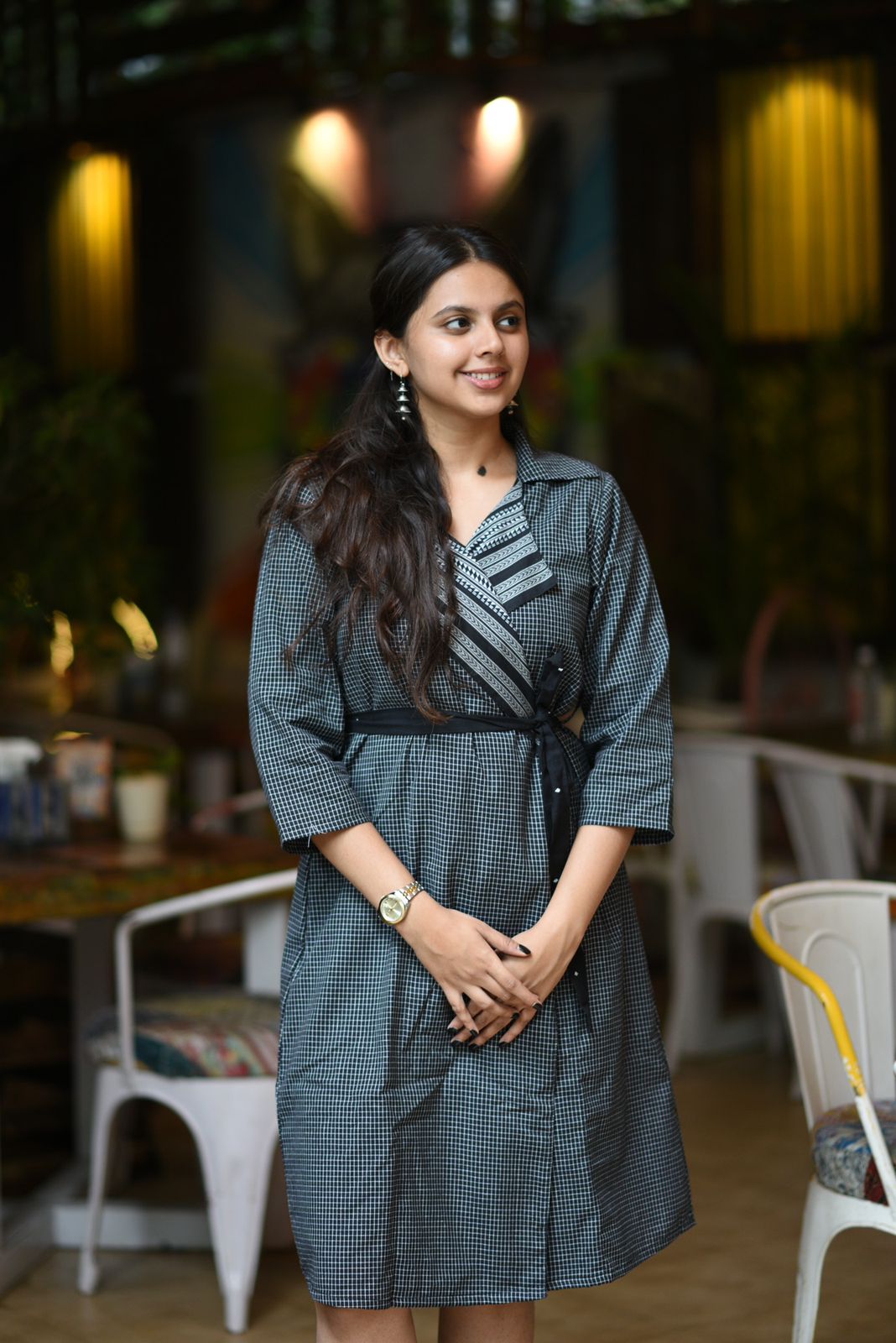 Step out in style with this black checkered cotton trench coat, a perfect blend of classic design and modern versatility. Crafted from breathable cotton, it features a timeless checkered pattern and a tailored silhouette for a flattering fit. Ideal for layering over dresses or casual outfits, it adds a chic, structured touch to any look while keeping you comfortable and effortlessly stylish.