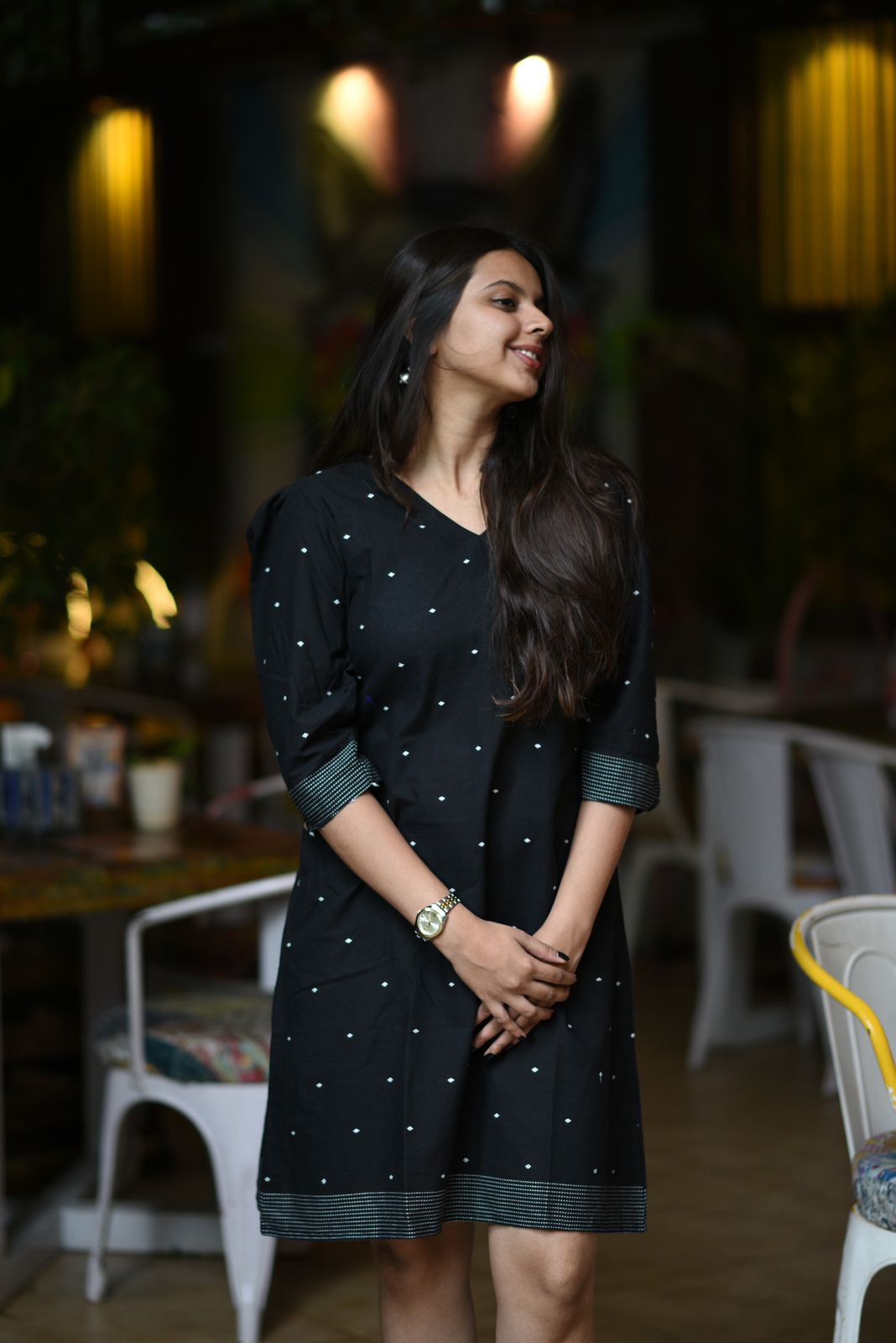 Elevate your everyday style with this classic black handloom dress. Crafted from soft, breathable handloom fabric, it offers effortless comfort and a naturally elegant drape. Minimalist yet sophisticated, it’s perfect for casual outings, workdays, or intimate gatherings, making it a versatile staple in any wardrobe.