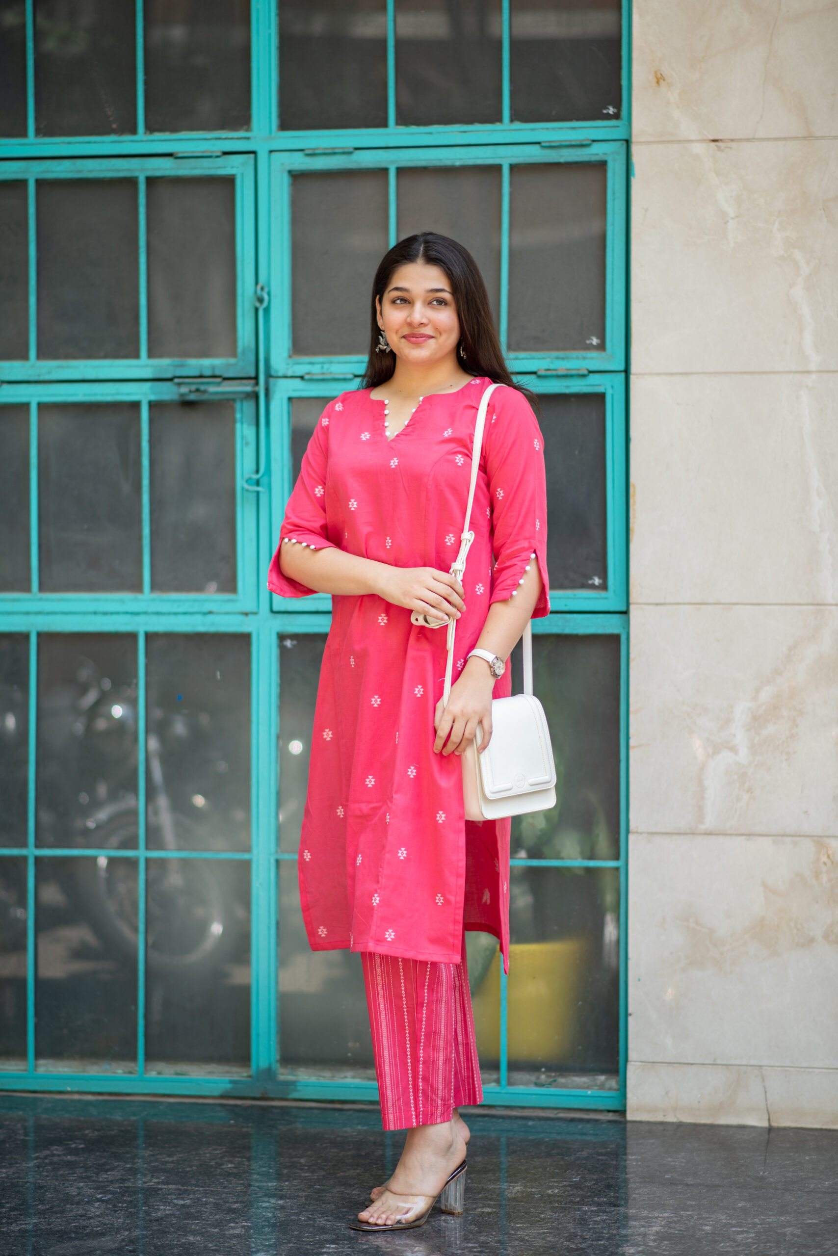 Be the first to review “Cherry Red Handloom Kurta Set”