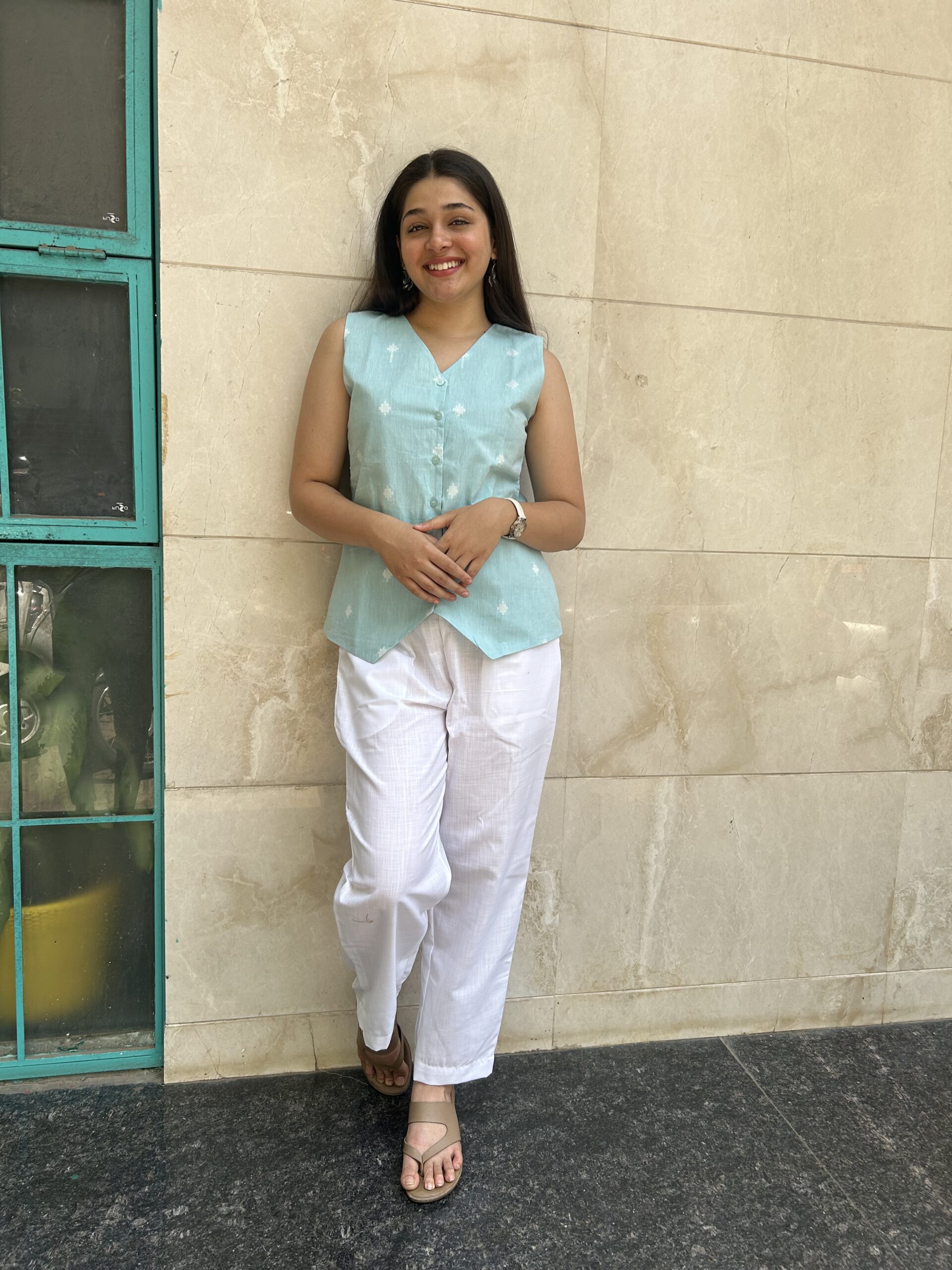 Be the first to review “Light Blue Waist Coat With Cotton Pants”