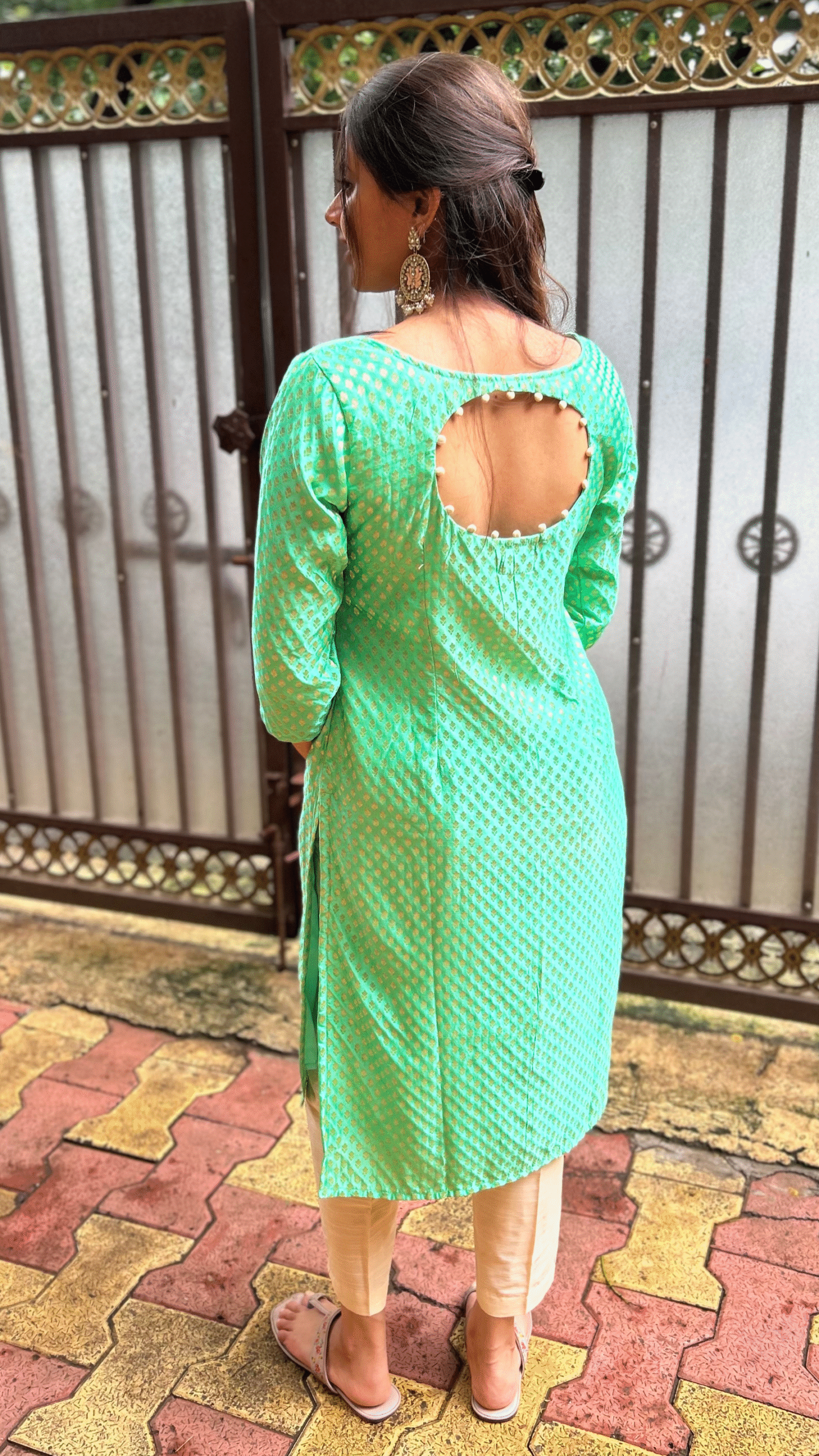 Be the first to review “Mint Green Banarasi Kurta and Ivory Pants Set”