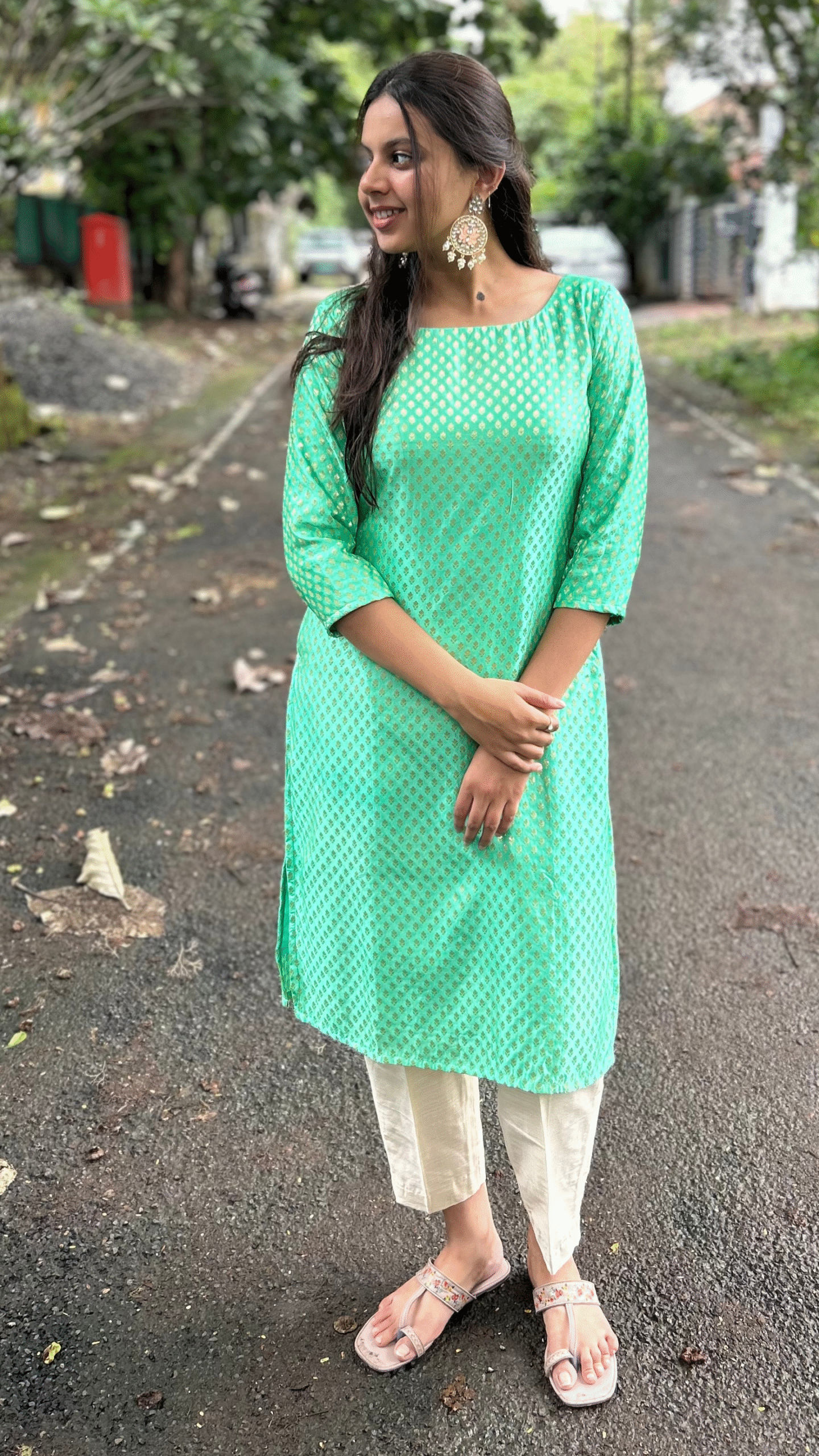 Mint Green Banarasi Kurta and Ivory Pants Set